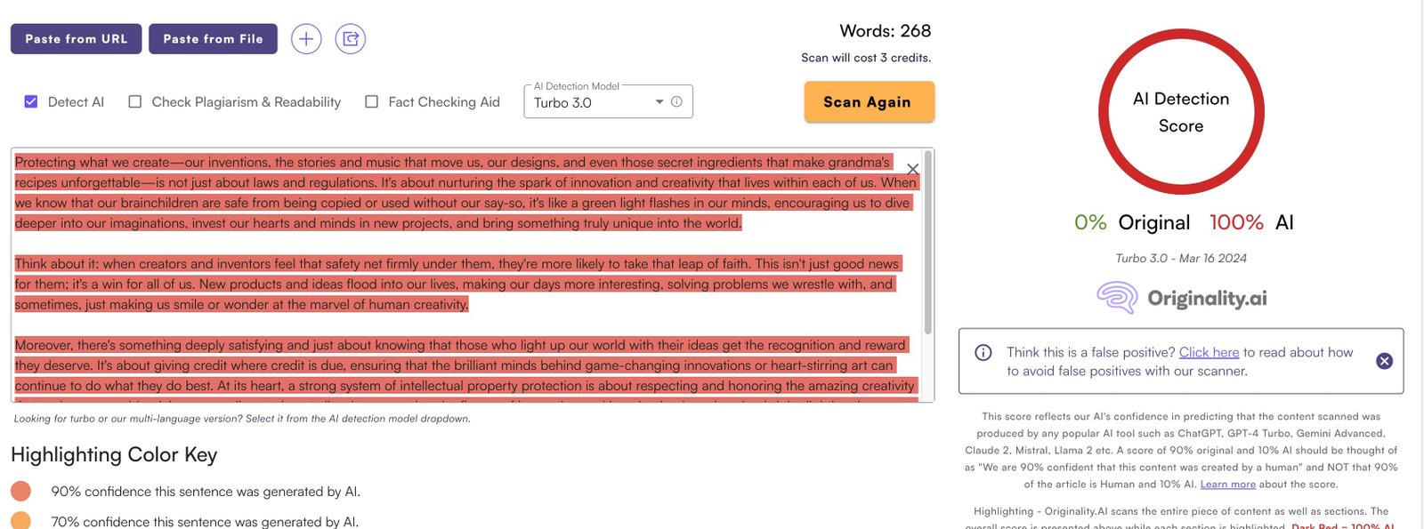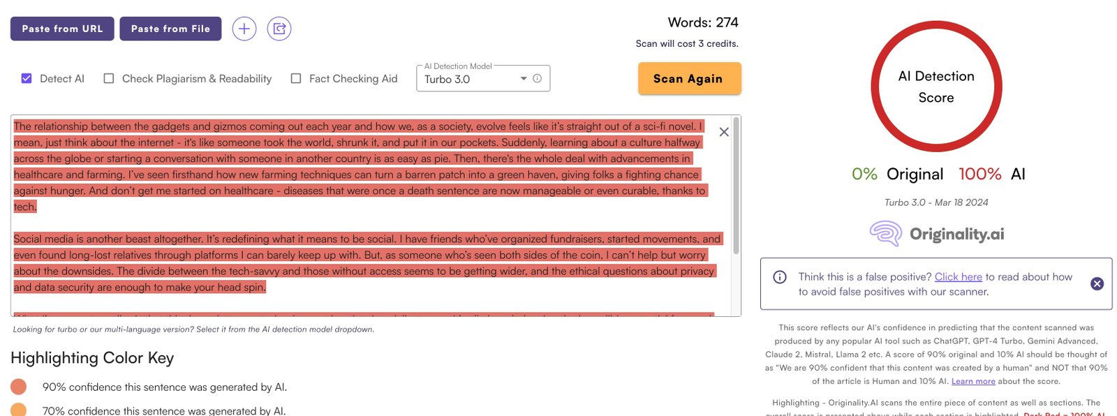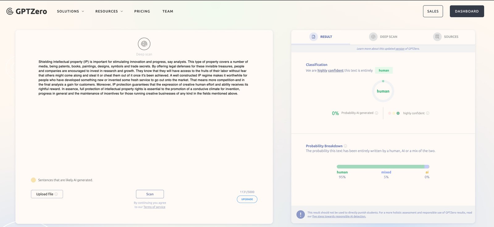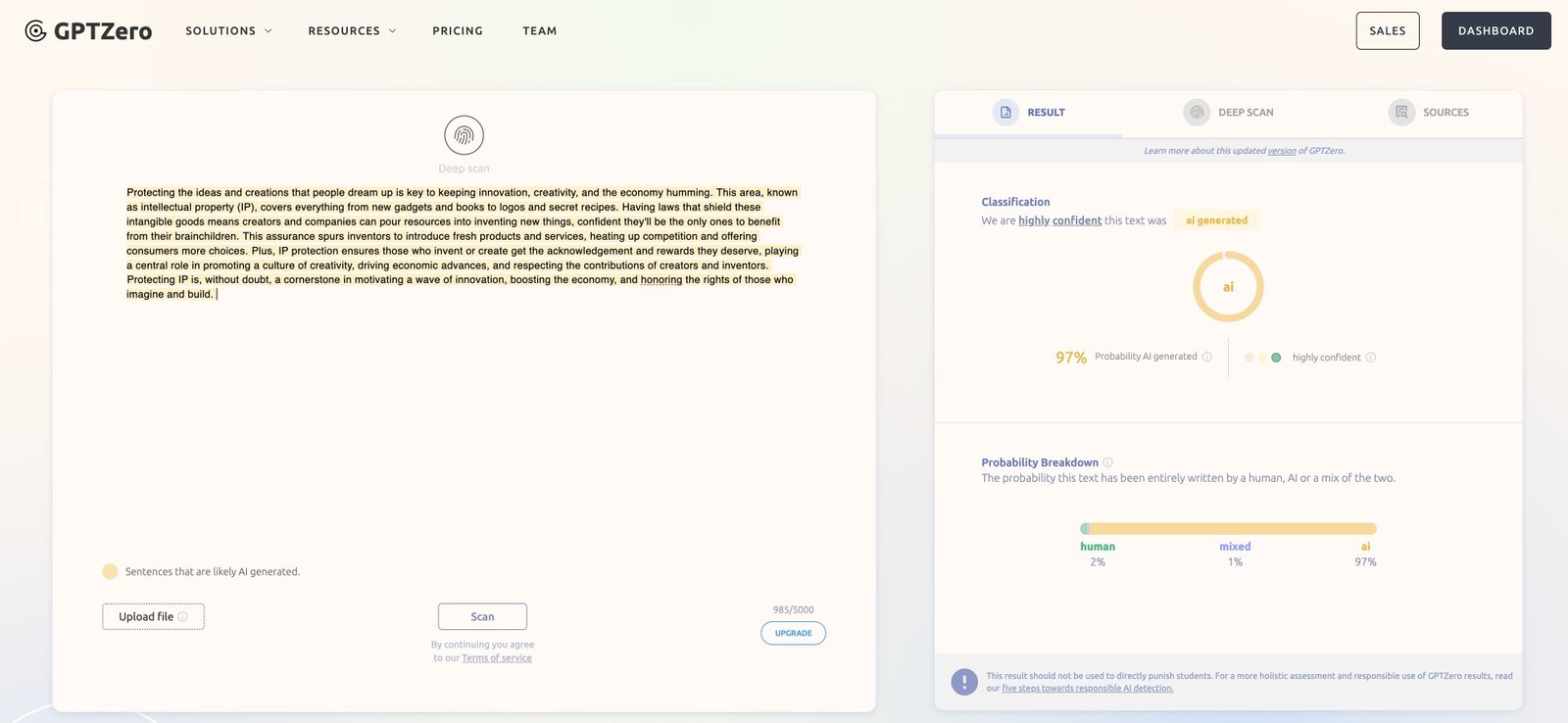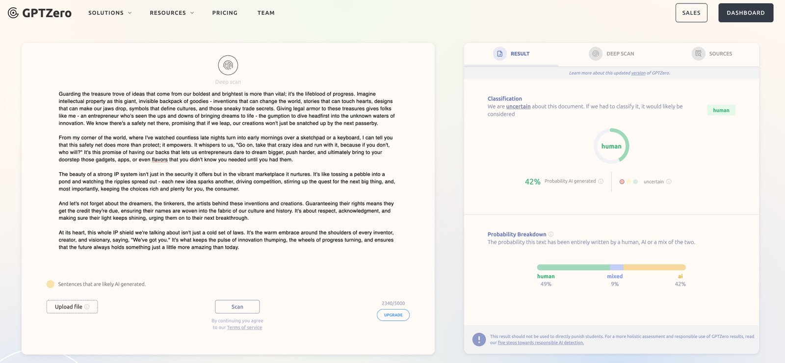 Now, let's see the results from the 2 mentioned AI content detectors.