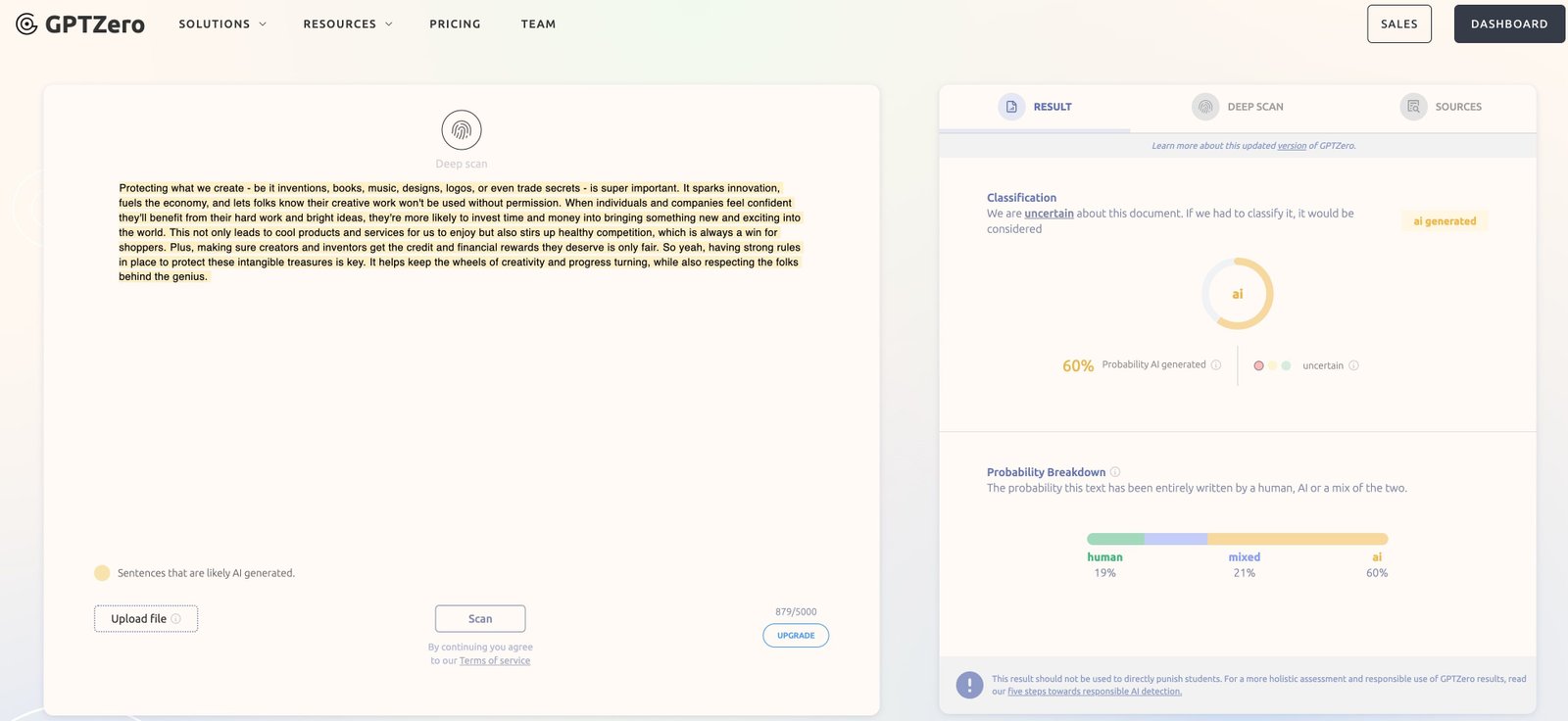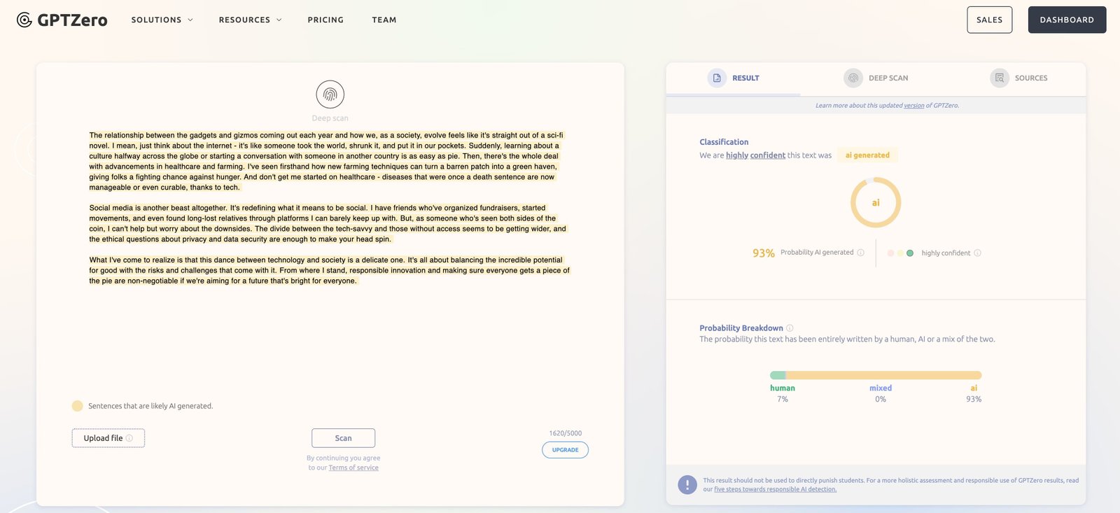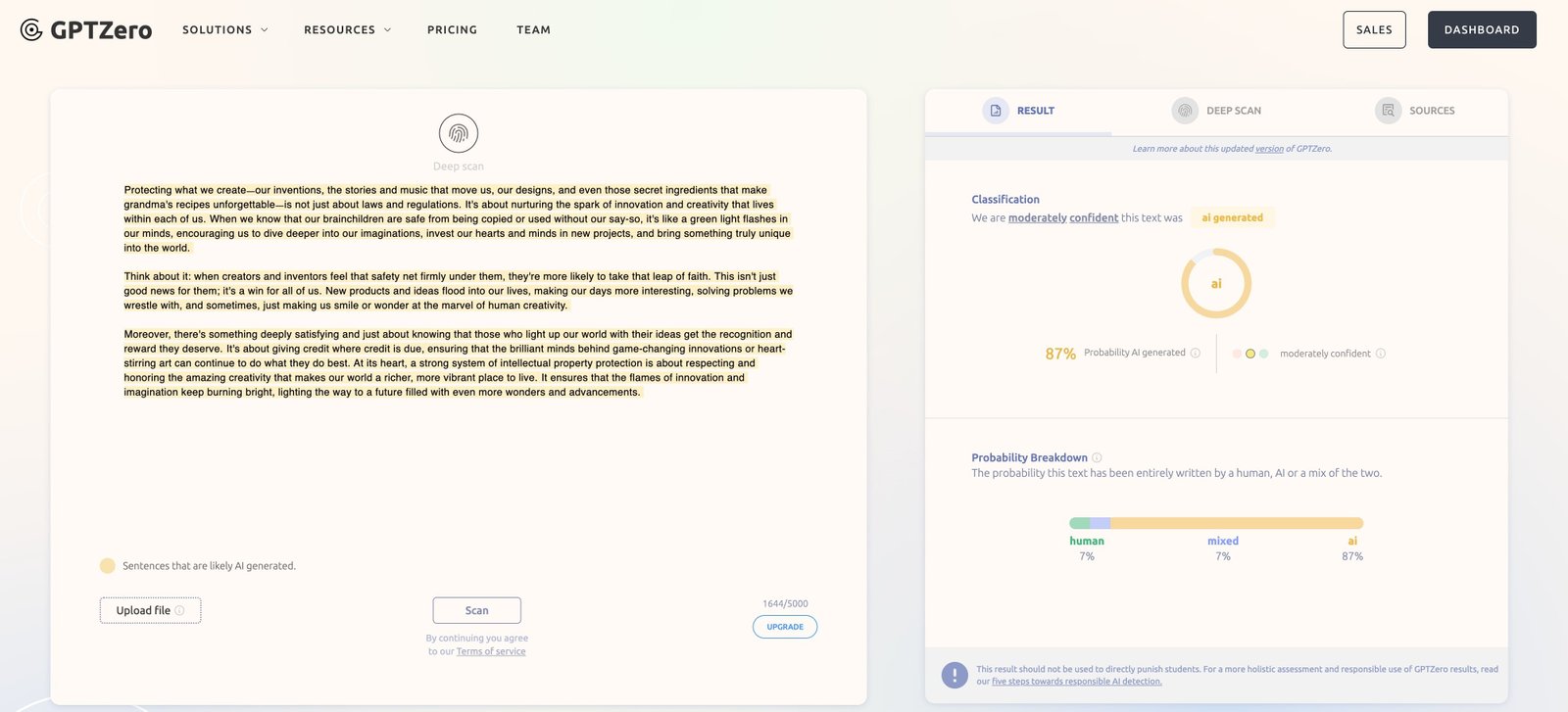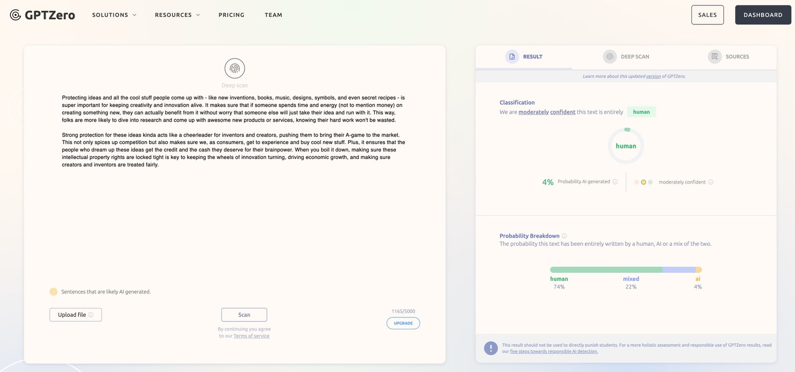 Now, let's see the results from the 2 mentioned AI content detectors.