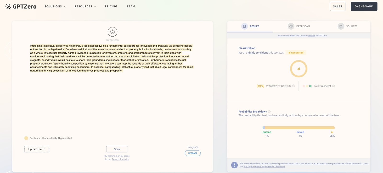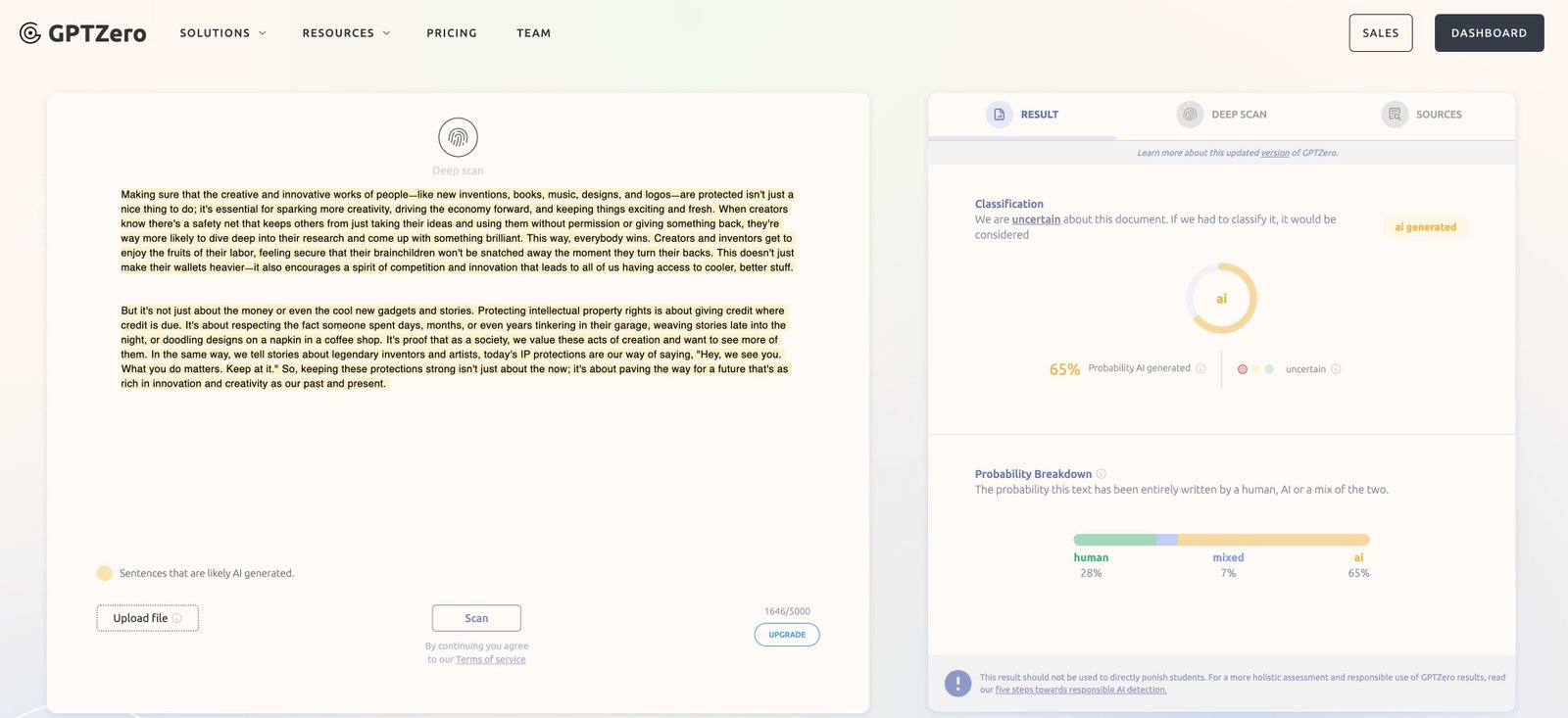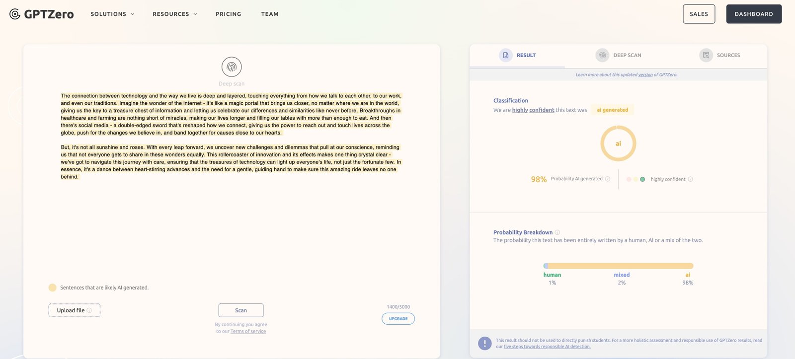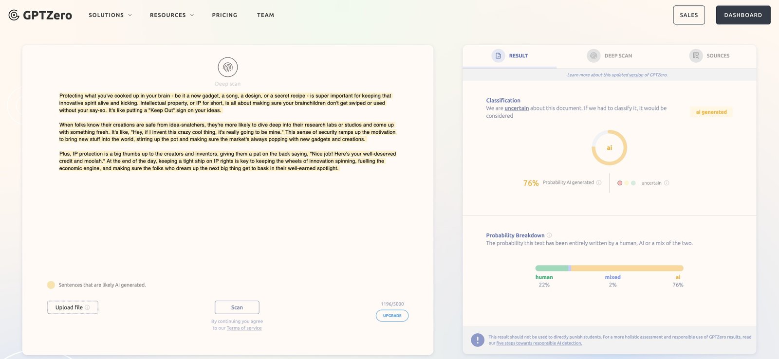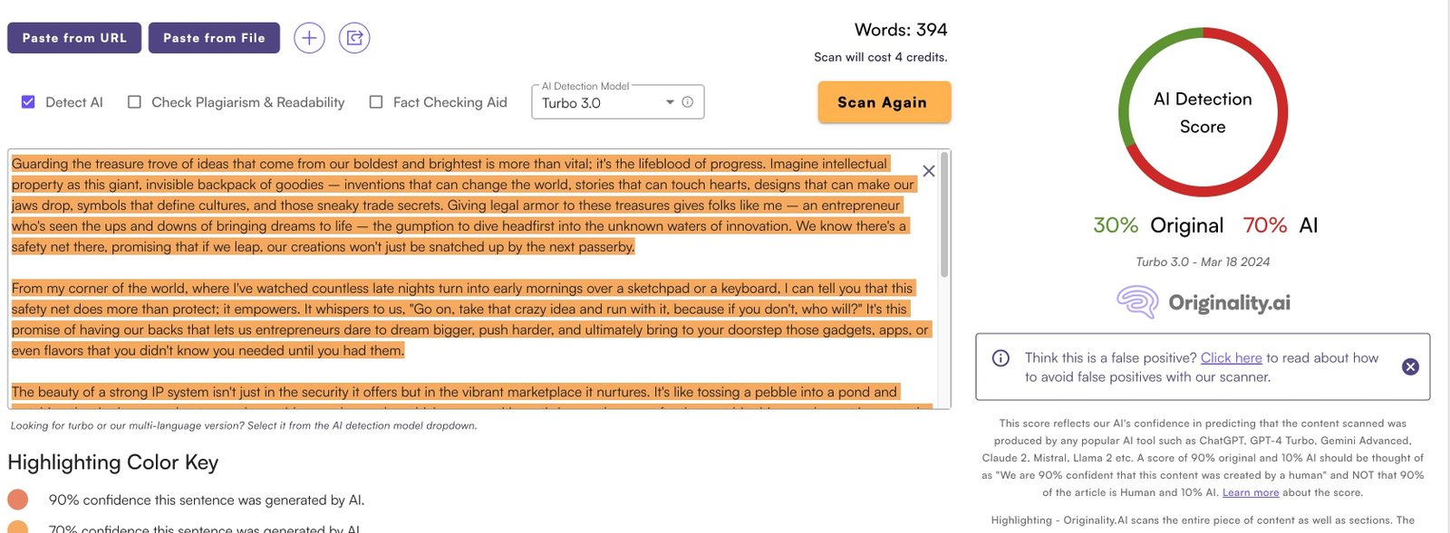 Now, let's see the results from the 2 mentioned AI content detectors.
