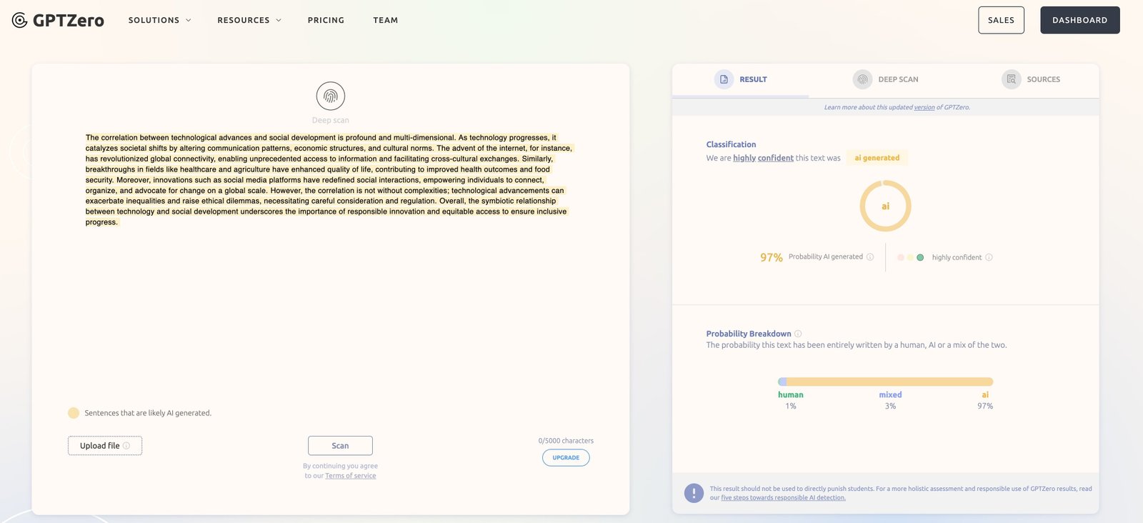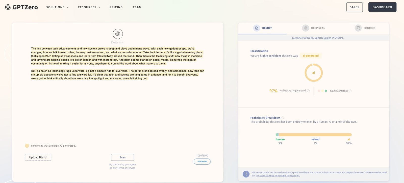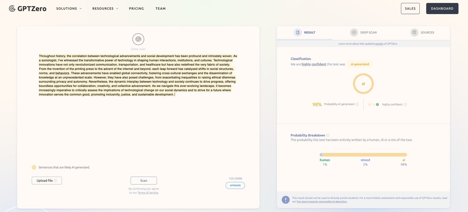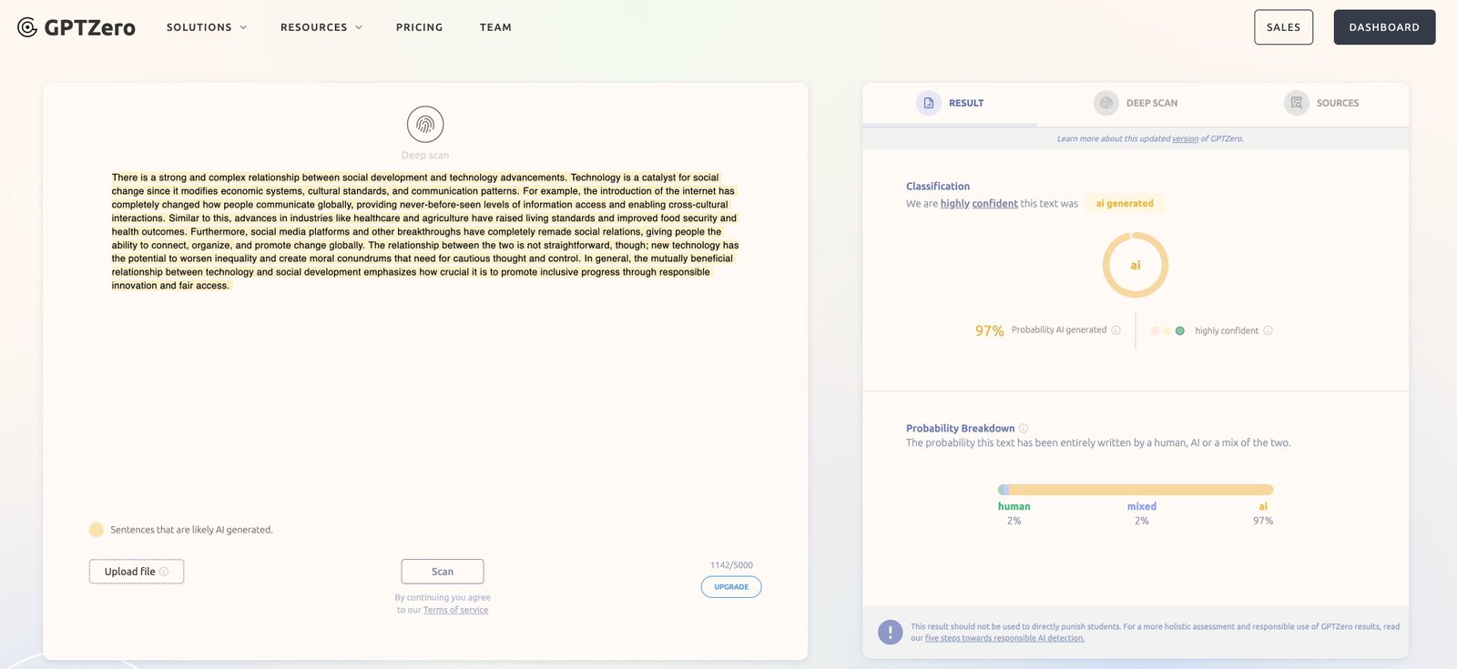 Now, let's see the results from the 2 mentioned AI content detectors.
