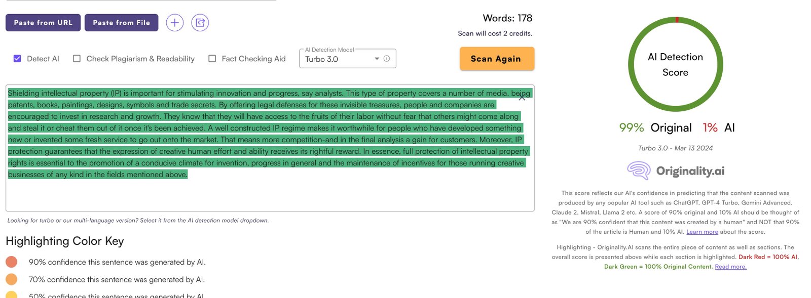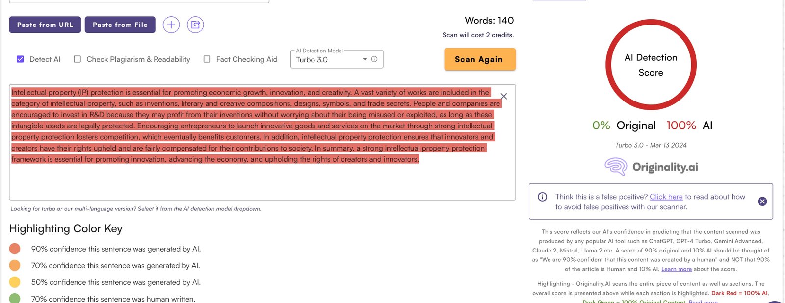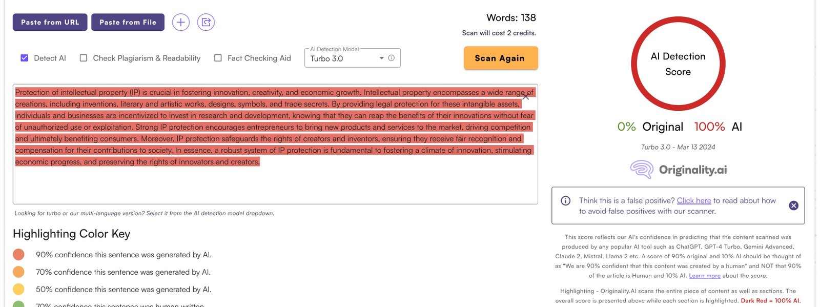 For the second testing paragraph, we are asking ChatGPT to explain the importance of protection towards intellectual property.