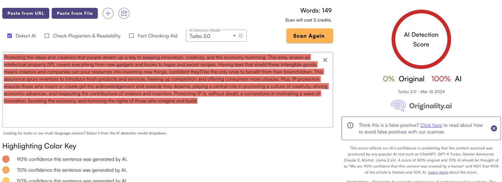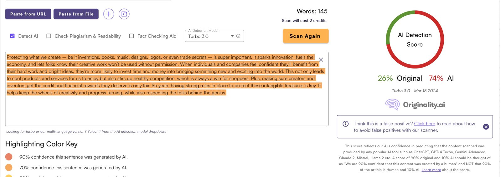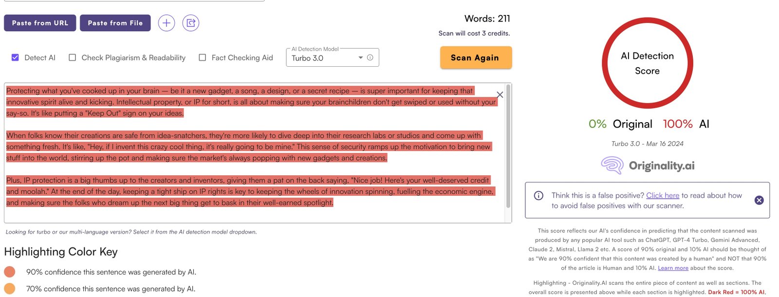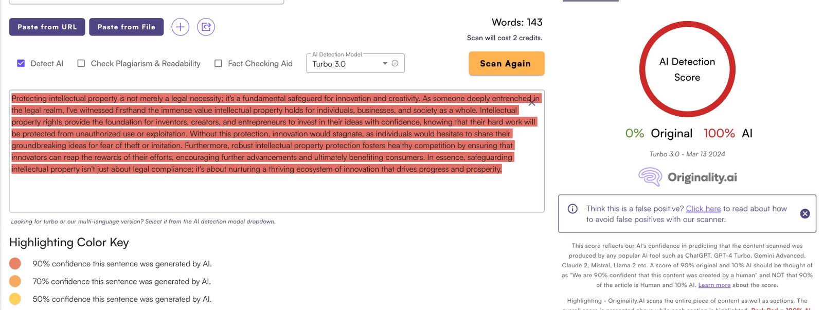For the second testing paragraph, we are asking ChatGPT to explain the importance of protection towards intellectual property.
